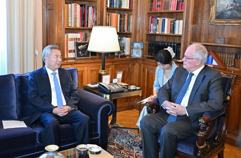 In talks with Kaklamanis, Li said that China is willing to work with Greece to implement the important consensus reached by the leaders of the two countries, to strengthen the two major bonds of mutually beneficial cooperation and civilizational exchanges, and to deepen exchanges at all levels and in various fields.