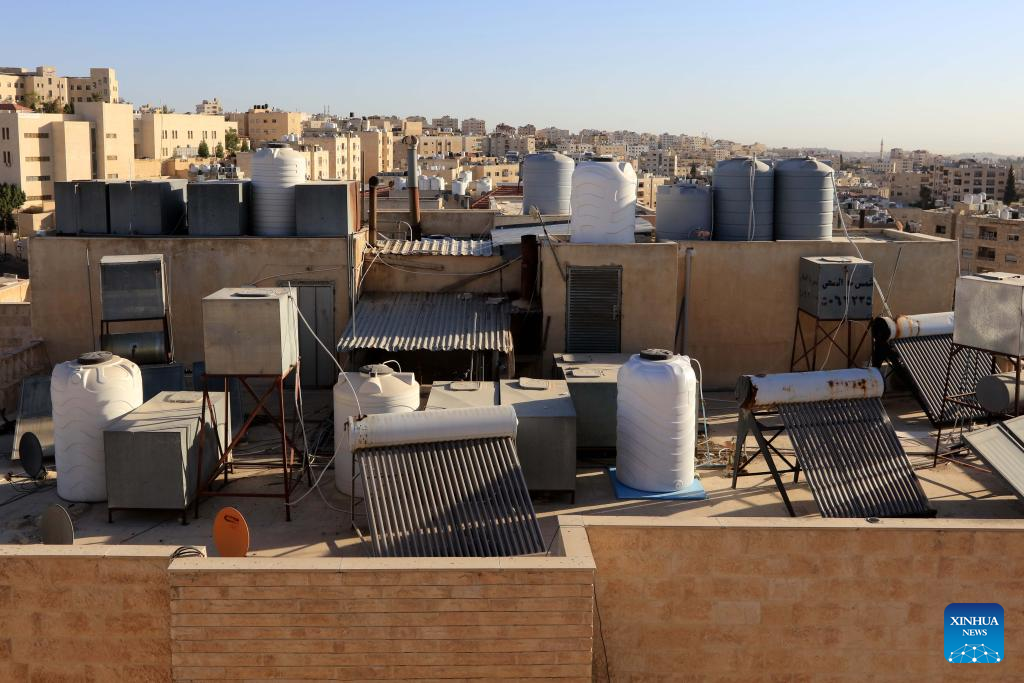 Water tanks on the roof of households are pictured in Amman, Jordan, on Sept. 21, 2025. Jordan is grappling with one of the world's most severe water crises caused by climate change, over-pumping, and rising demand, as local authorities are trying to manage scarcity with a rotation system and large-scale infrastructure projects.(Photo by Mohammad Abu Ghosh/Xinhua)