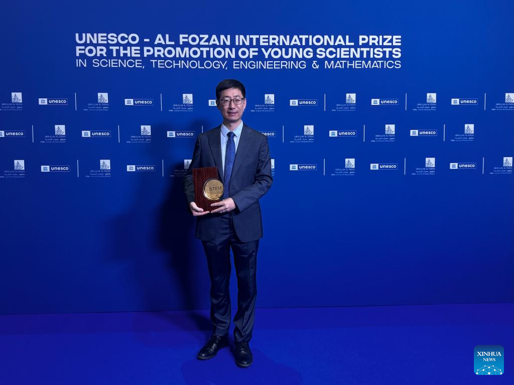 PARIS, Sept. 19 (Xinhua) -- Cheng Lijing, a researcher at the Institute of Atmospheric Physics of the Chinese Academy of Sciences, was awarded the UNESCO-Al Fozan Prize for the Promotion of Young Scientists in the fields of science, technology, engineering and mathematics (STEM) in Paris on Friday.