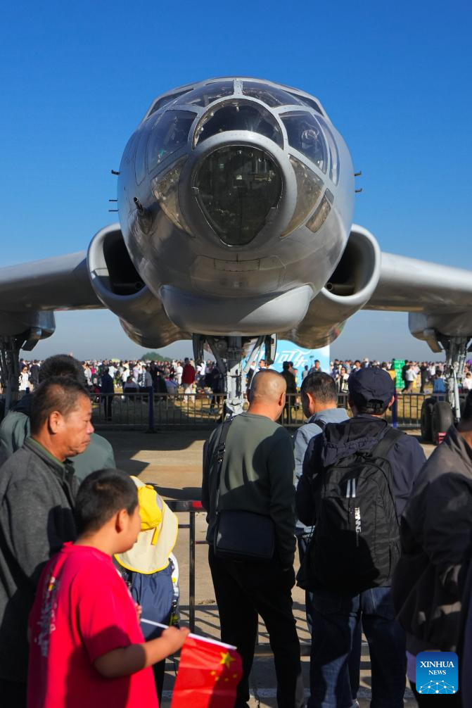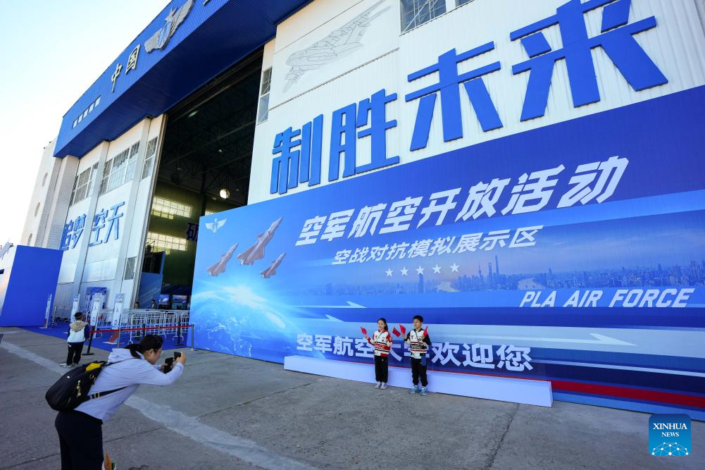 Tourists visit the 2025 aviation open-day activities of the Chinese People's Liberation Army (PLA) Air Force and Changchun Air Show in Changchun, northeast China's Jilin Province, Sept. 20, 2025. The event is held here from Sept. 19 to 23, which comprehensively showcases the history and modernization of the PLA Air Force through aerobatic performances, equipment exhibitions, and various interactive activities. (Xinhua/Xu Chang)