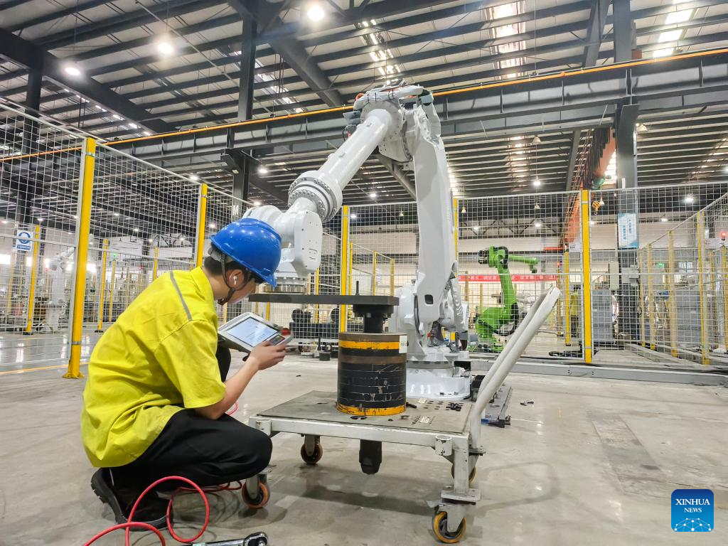 A man works at a workshop of EFORT Intelligent Robot Co., Ltd. in Wuhu, east China's Anhui Province, Sept. 17, 2025. (Xinhua/Wang Haiyue)