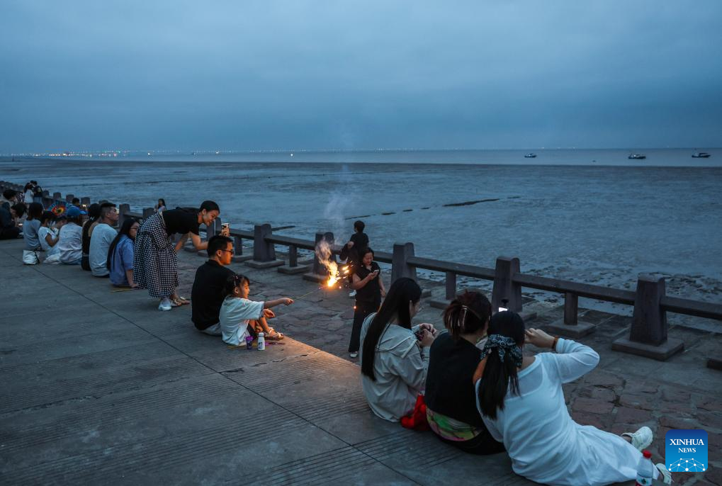 People wait for the sunrise by the sea in Haiyan County, Jiaxing City, east China's Zhejiang Province on Sept. 20, 2025. Shendang Town has been developing a distinctive cultural and tourism route with its own features, making the town a highly sought-after tourist destination in the Yangtze River Delta region since 2024. It has integrated its most distinctive culture, intangible cultural heritages, landmarks, and surrounding cultural tourism projects with the characteristics of the town, offering visitors exceptional cultural and tourism experiences.
