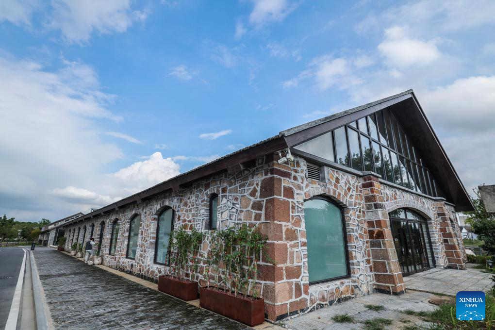 This photo taken on Sept. 19, 2025 shows a view in a barn-modified cultural industrial park in Shendang Town in Haiyan County, Jiaxing City, east China's Zhejiang Province. Shendang Town has been developing a distinctive cultural and tourism route with its own features, making the town a highly sought-after tourist destination in the Yangtze River Delta region since 2024. It has integrated its most distinctive culture, intangible cultural heritages, landmarks, and surrounding cultural tourism projects with the characteristics of the town, offering visitors exceptional cultural and tourism experiences.