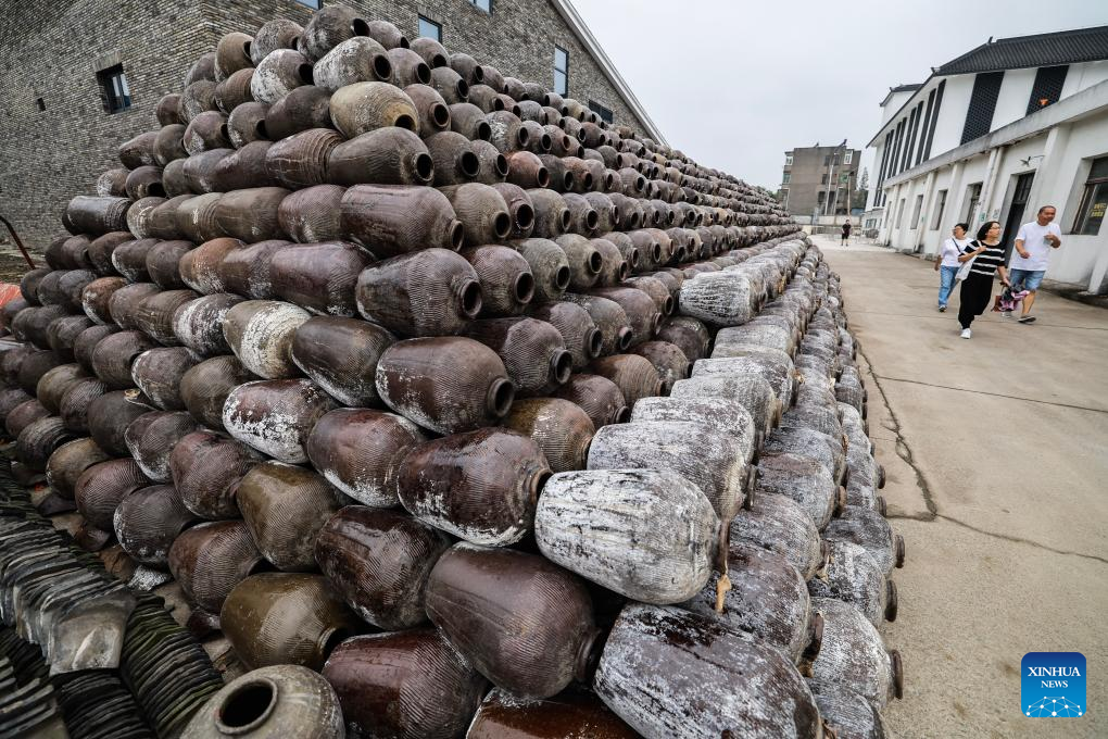 People tour the underground wine cellar of Shendang Winery Co., Ltd. in Haiyan County of Jiaxing City, east China's Zhejiang Province on Sept. 20, 2025. Shendang Town has been developing a distinctive cultural and tourism route with its own features, making the town a highly sought-after tourist destination in the Yangtze River Delta region since 2024. It has integrated its most distinctive culture, intangible cultural heritages, landmarks, and surrounding cultural tourism projects with the characteristics of the town, offering visitors exceptional cultural and tourism experiences.