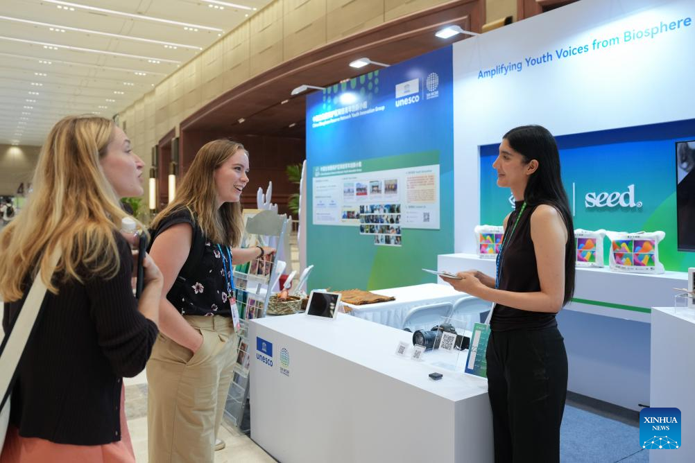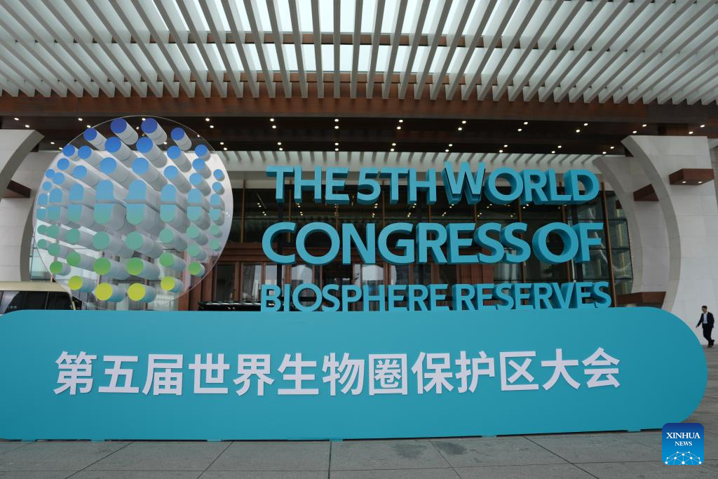 Representatives are seen at a sideline event of the 5th World Congress of Biosphere Reserves in Hangzhou, east China's Zhejiang Province, Sept. 22, 2025. The 5th World Congress of Biosphere Reserves kicked off here on Monday and will last till Sept. 25. (Xinhua/Huang Zongzhi)