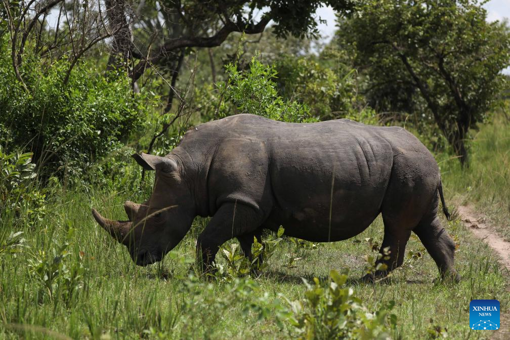 The naming ceremony, which coincided with World Rhino Day, allows individuals, corporations, and philanthropists to symbolically "adopt" and name a rhino, with the proceeds supporting habitat expansion, veterinary care, and conservation efforts. (Photo by Hajarah Nalwadda/Xinhua)