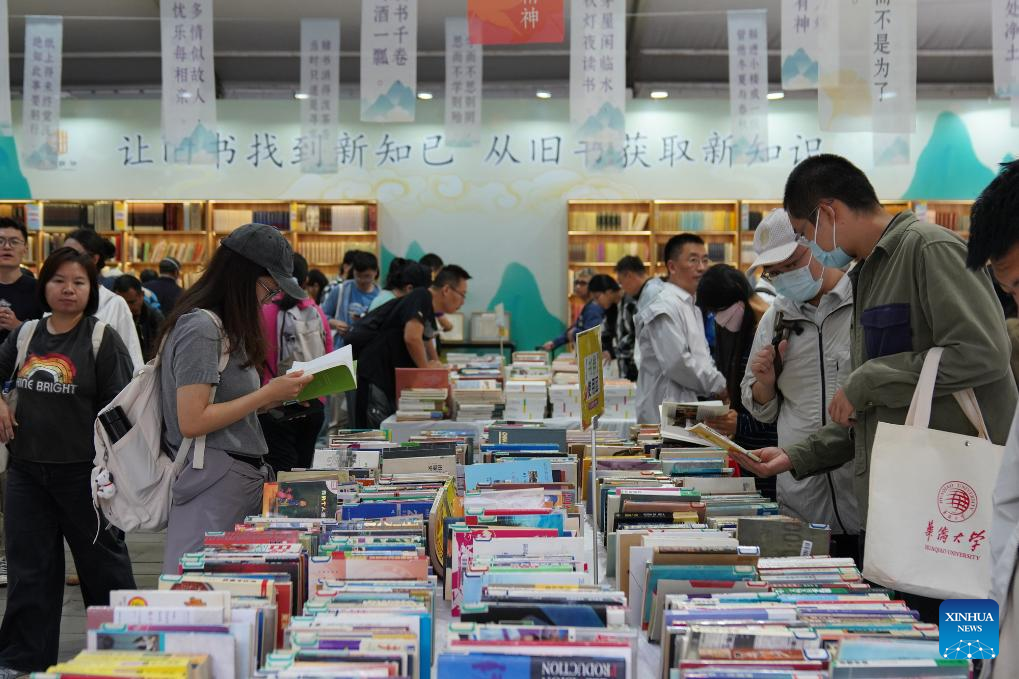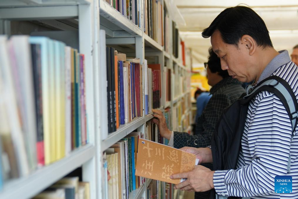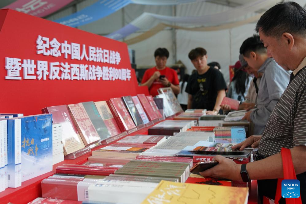 Visitors choose books during the Beijing Book Fair 2025 at the Ditan Park, also known as the Temple of Earth, in Beijing, capital of China, Sept. 22, 2025. Themed "Read to Become a Better You," the 11-day Beijing Book Fair 2025 concluded at the Temple of Earth on Monday. (Xinhua/Dai Mingxuan)