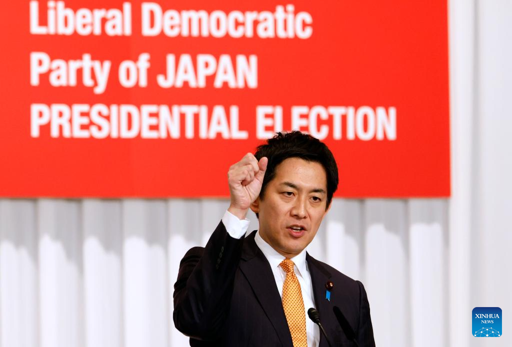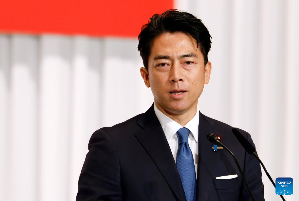 Agriculture Minister Shinjiro Koizumi speaks during a leadership election campaign of Liberal Democratic Party (LDP) in Tokyo, Japan, Sept. 22, 2025. Japan's ruling LDP officially launched its leadership election campaign on Monday, with five candidates filing their candidacies. (Franck Robichon/Pool via Xinhua)