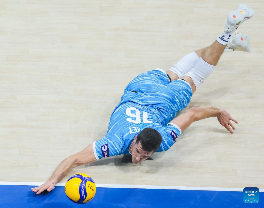 Grega Okroglic of Slovenia competes during the round of 16 match between the United States and Slovenia at the FIVB Men's World Championship 2025 in Pasay City, the Philippines, Sept. 22, 2025. (Xinhua/Rouelle Umali)