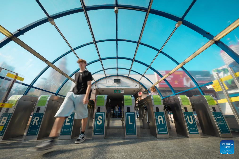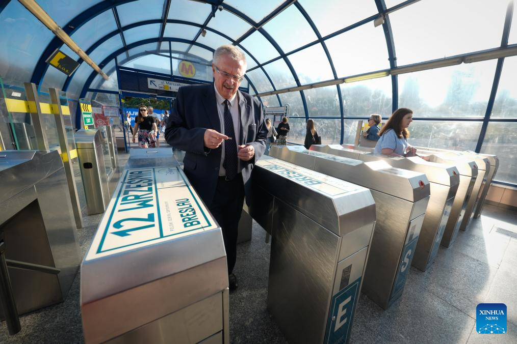 A man walks out of a central metro station in Warsaw, Poland on Sept. 22, 2025. Public transportation in Warsaw was free of charge for all passengers on World Car Free Day, part of the European Mobility Week to promote sustainable urban mobility. (Photo by Jaap Arriens/Xinhua)
