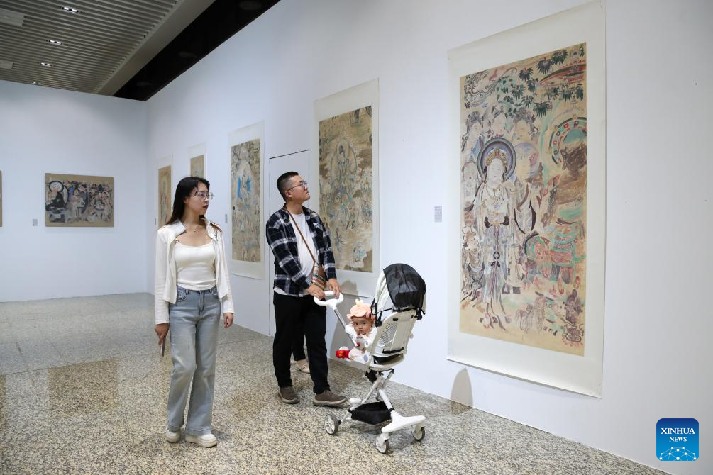 People visit an exhibition held by the Dunhuang Academy during the 8th Silk Road (Dunhuang) International Cultural Expo in Dunhuang, northwest China's Gansu Province, Sept. 22, 2025. More than 1,200 representatives from 97 countries and eight international organizations have gathered at the 8th Silk Road (Dunhuang) International Cultural Expo, which kicked off on Sunday in Dunhuang, a key hub on the ancient Silk Road in northwest China.