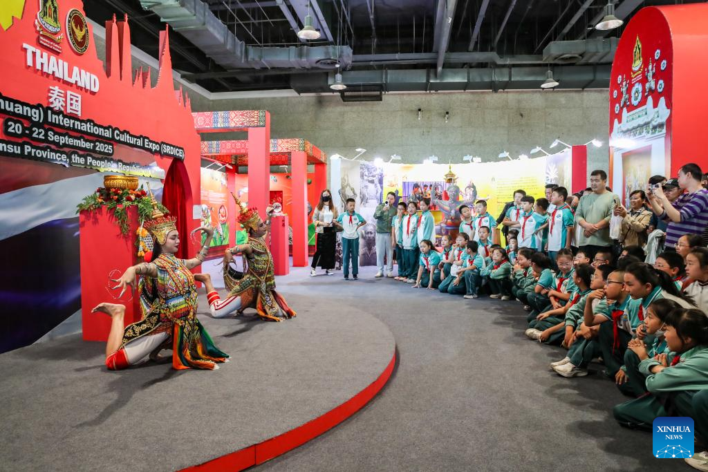 Students watch a performance during the 8th Silk Road (Dunhuang) International Cultural Expo in Dunhuang, northwest China's Gansu Province, Sept. 22, 2025. More than 1,200 representatives from 97 countries and eight international organizations have gathered at the 8th Silk Road (Dunhuang) International Cultural Expo, which kicked off on Sunday in Dunhuang, a key hub on the ancient Silk Road in northwest China.