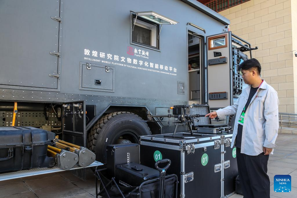 A staff member displays an intelligent mobile platform of cultural heritage digitization at an exhibition held by the Dunhuang Academy during the 8th Silk Road (Dunhuang) International Cultural Expo in Dunhuang, northwest China's Gansu Province, Sept. 22, 2025. More than 1,200 representatives from 97 countries and eight international organizations have gathered at the 8th Silk Road (Dunhuang) International Cultural Expo, which kicked off on Sunday in Dunhuang, a key hub on the ancient Silk Road in northwest China.