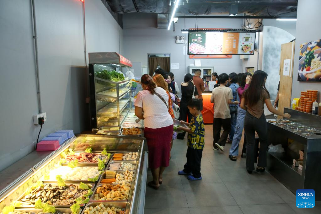 Customers select ingredients for Chinese mala dishes at a restaurant in Yangon, Myanmar, Sept. 23, 2025. (Xinhua/Myo Kyaw Soe)