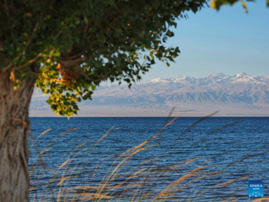 This photo taken on Sept. 20, 2025 shows the scenery of the southern shore of Issyk-Kul Lake, Kyrgyzstan.
