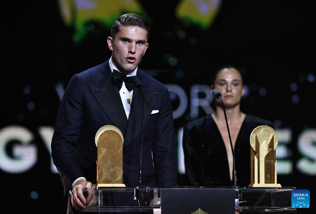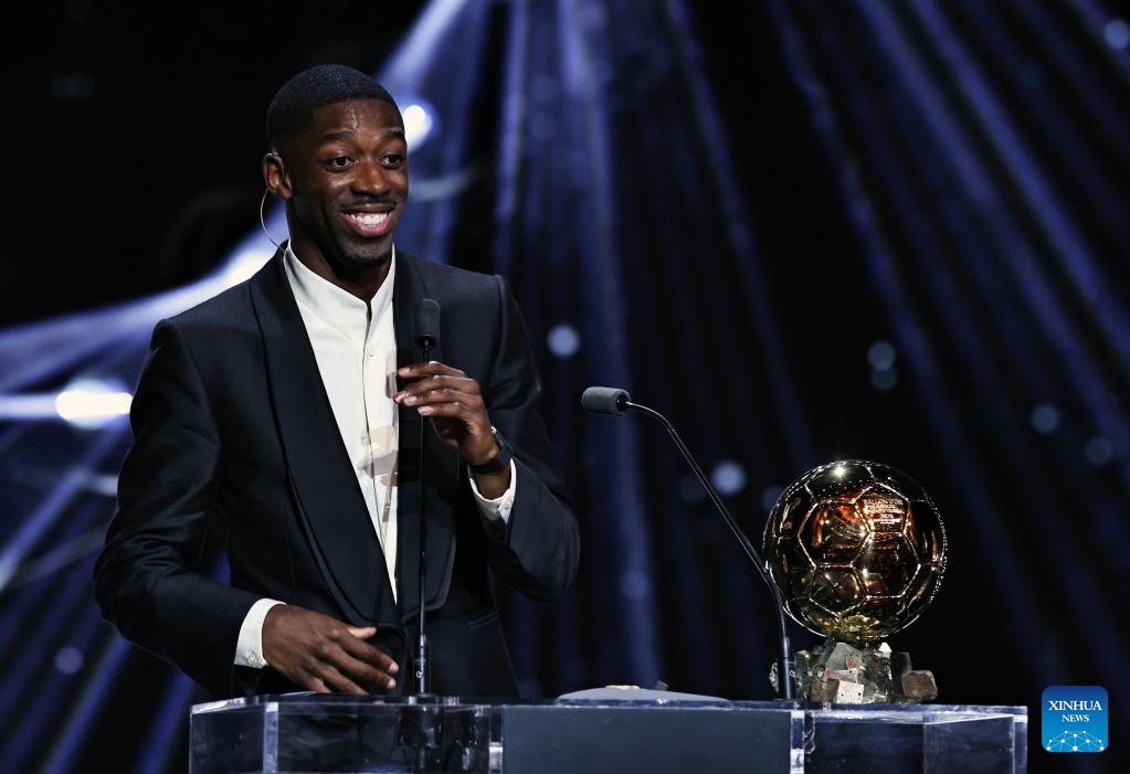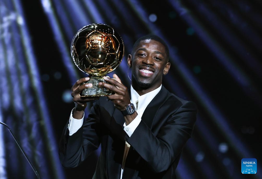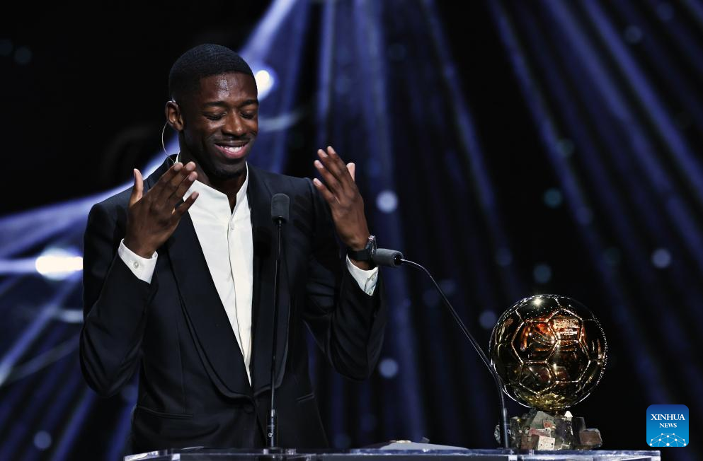 PARIS, Sept. 22 (Xinhua) -- Paris Saint-Germain forward Ousmane Dembele won the 2025 men's Ballon d'Or at the annual awards ceremony in Paris on Monday, claiming the honor for the first time in his career.