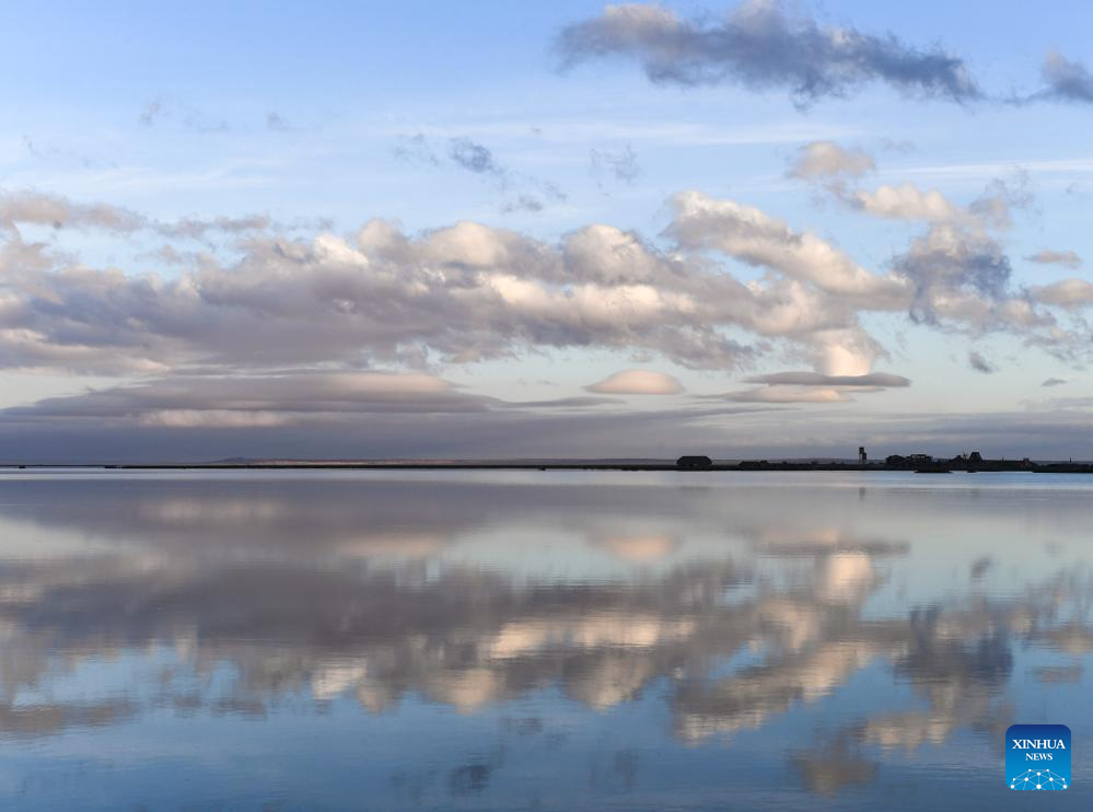 This photo taken on Sept. 21, 2025 shows the Lake Amboseli at dawn at Amboseli National Park in Kajiado County, Kenya. Located at the border between Kenya and Tanzania and at the foot of Africa's highest peak Mount Kilimanjaro, the park is known for its unique scenery and is one of the best places in Kenya to see various wild animals. (Xinhua/Li Yahui)
