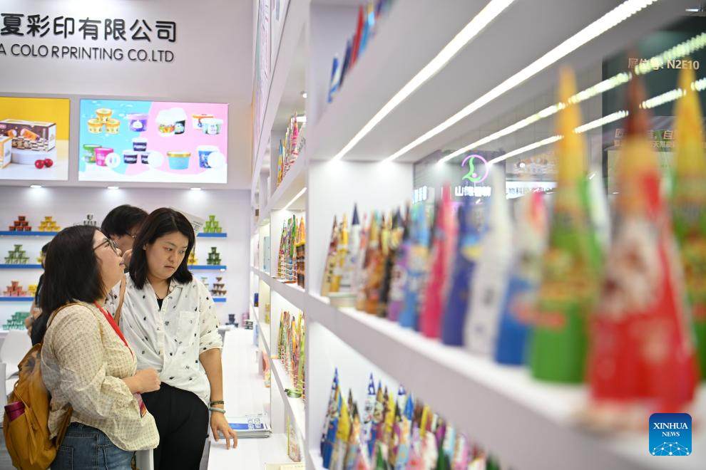 People visit the Ice Cream China 2025 in north China's Tianjin Municipality, Sept. 24, 2025. The three-day Ice Cream China 2025 kicked off here on Wednesday, attracting more than 500 companies from home and abroad. (Xinhua/Sun Fanyue)