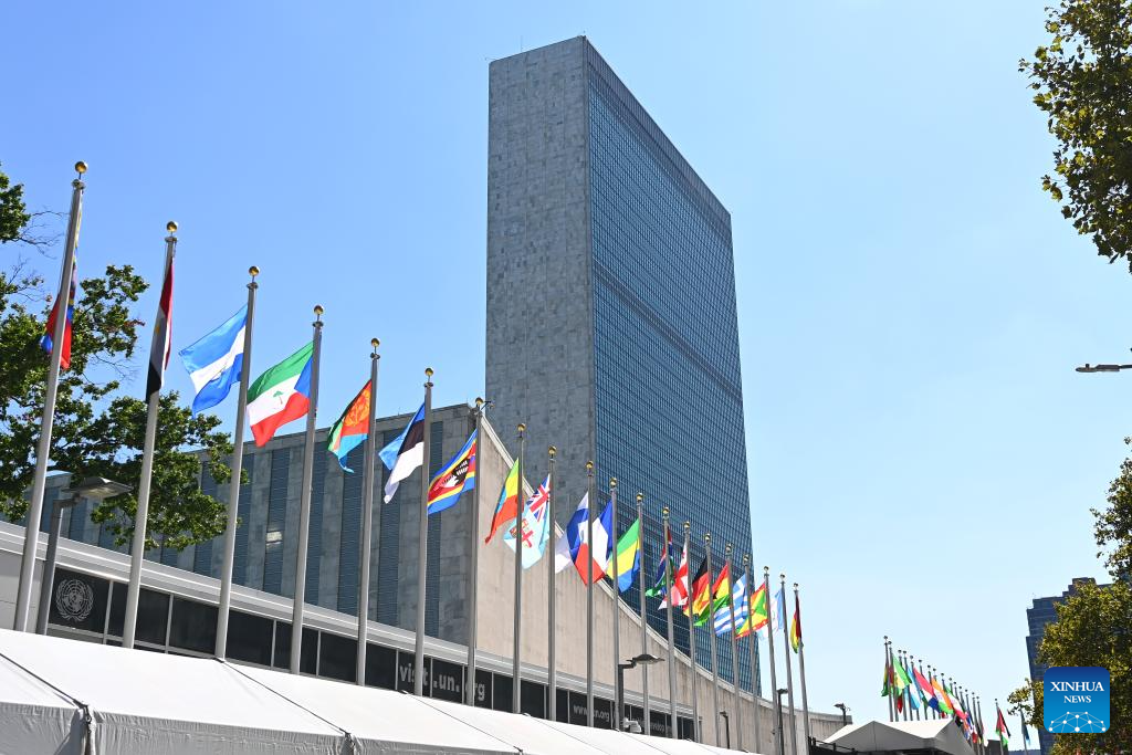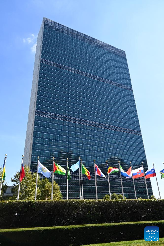 This photo taken on Sept. 18, 2025 shows the exterior view of the United Nations headquarters in New York. This year marks the 80th anniversary of the founding of the United Nations. (Xinhua/Li Rui)