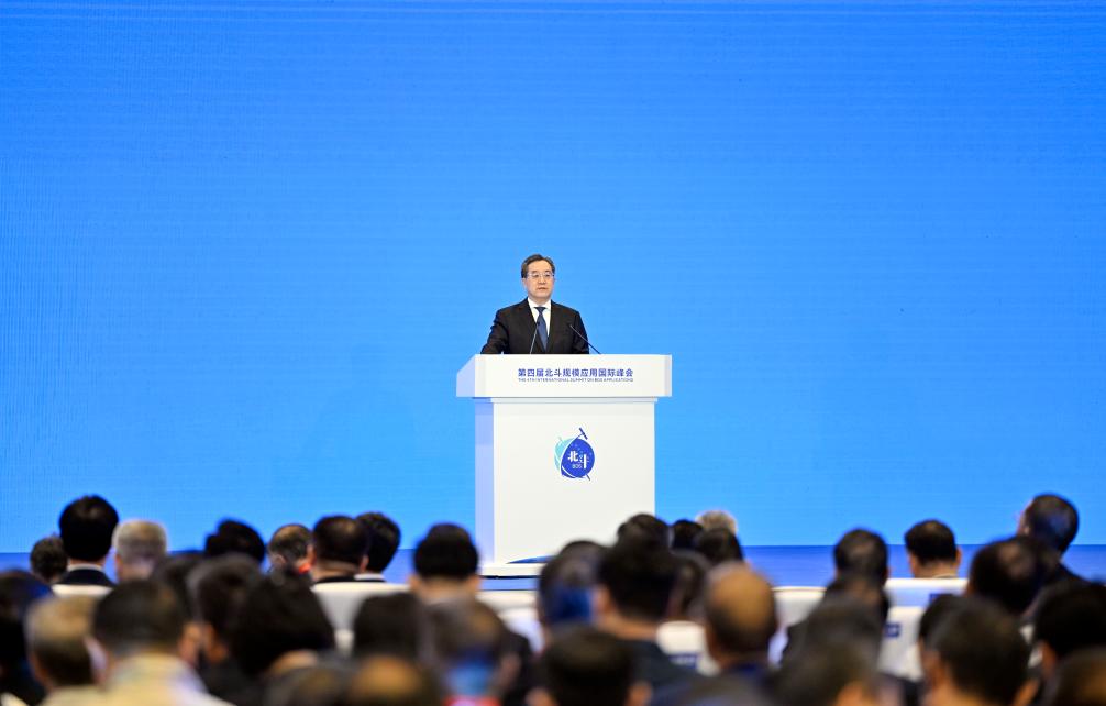 Chinese Vice Premier Ding Xuexiang, also a member of the Standing Committee of the Political Bureau of the Communist Party of China Central Committee, addresses the opening ceremony of the 4th International Summit on the BeiDou Navigation Satellite System (BDS) Applications in Zhuzhou, central China's Hunan Province, Sept. 24, 2025. (Xinhua/Yin Bogu)