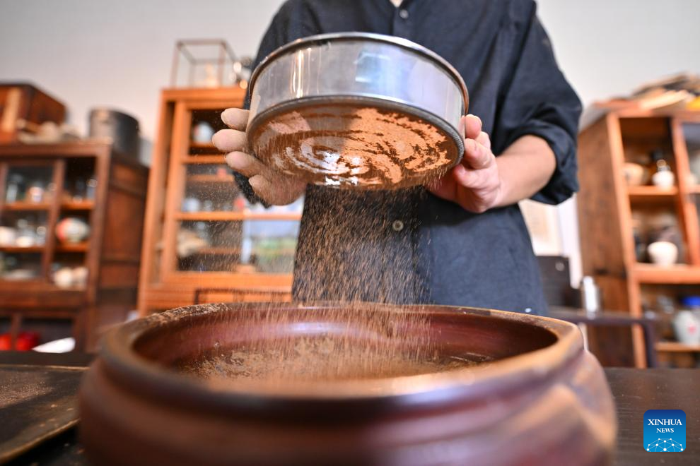 Chen Bin, an incense-making artisan, makes natural incense by hand in Xianyou County, southeast China's Fujian Province, on Sept. 24, 2025. Xianyou County is a significant trading and distribution center for agarwood and sandalwood in China. In recent years, the county has been working on the development of its incense-related business by leveraging the abundance in raw materials, a mature incense-making industrial chain, and online and offline sales networks there.