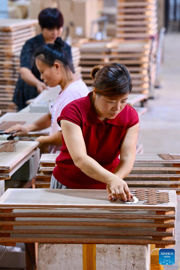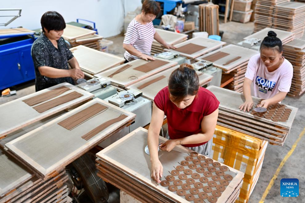 Staff members of an incense-making enterprise make incense sticks in Laidian Town, Xianyou County of southeast China's Fujian Province, on Sept. 24, 2025. Xianyou County is a significant trading and distribution center for agarwood and sandalwood in China. In recent years, the county has been working on the development of its incense-related business by leveraging the abundance in raw materials, a mature incense-making industrial chain, and online and offline sales networks there.
