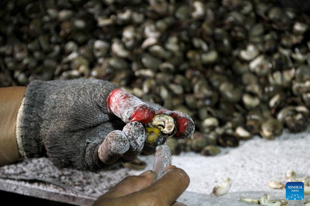 A worker peels raw cashew nuts in Mojopakel village of Wonogiri regency, Central Java, Indonesia, Sept. 24, 2025. Indonesia has allocated 9.9 trillion rupiahs (around 604 million U.S. dollars) to strengthen the downstreaming of key plantation commodities and improve farmer welfare.