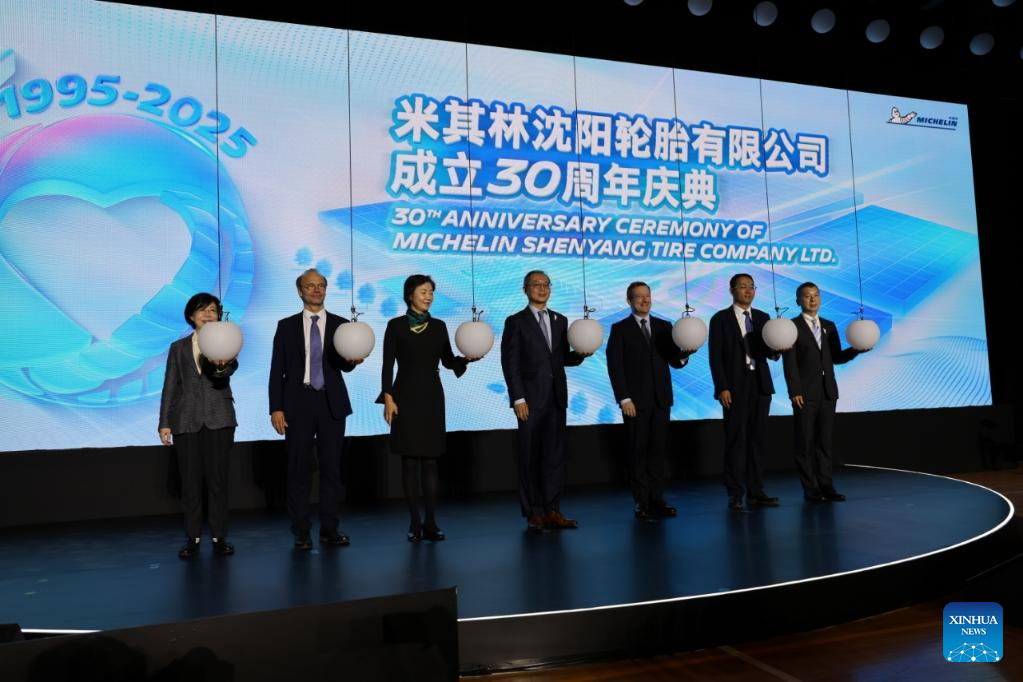 This photo taken on Sept. 24, 2025 shows the 30th anniversary ceremony of Michelin Shenyang Tire Company Ltd. in Shenyang, northeast China's Liaoning Province. (Xinhua/Han He)