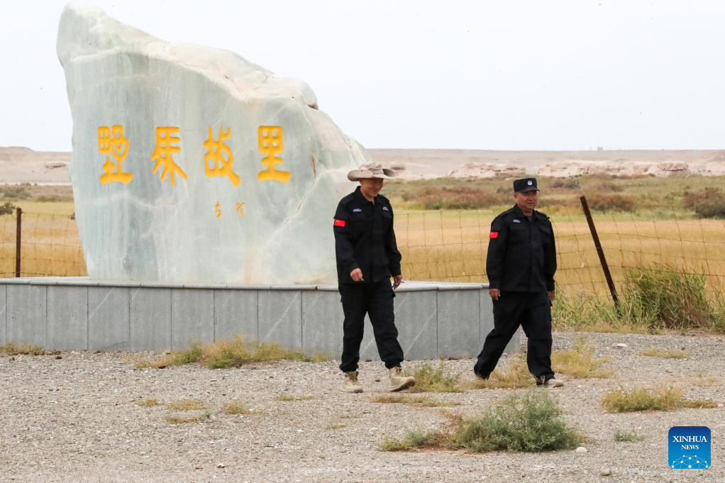 Staff members check the daily life of Przewalski's horses in the Dunhuang West Lake National Nature Reserve in Dunhuang, northwest China's Gansu Province, on Sept. 24, 2025. The Dunhuang West Lake National Nature Reserve in Gansu Province covers an area of approximately 660,000 hectares, featuring a diverse ecosystem including wetlands, grasslands, forests and Gobi deserts, which makes it an experimental zone for the wild release of the Przewalski's horses.