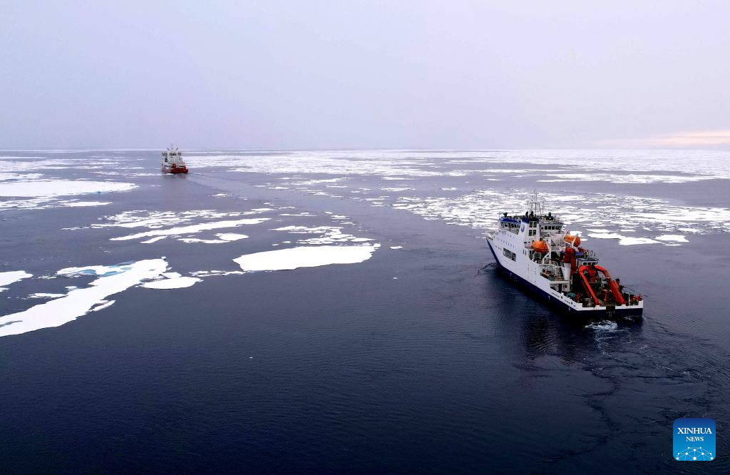 Organized by the Ministry of Natural Resources, this round of Arctic survey was jointly carried out by four vessels, including Xuelong 2, Jidi, Shenhai-1 and Tansuo-3. This Arctic expedition has further enhanced China's understanding of the rapid changes in the Arctic Ocean and their impacts, providing important support for a deeper understanding and effective response to global climate change, according to the researchers. (Xinhua/Liu Shiping)