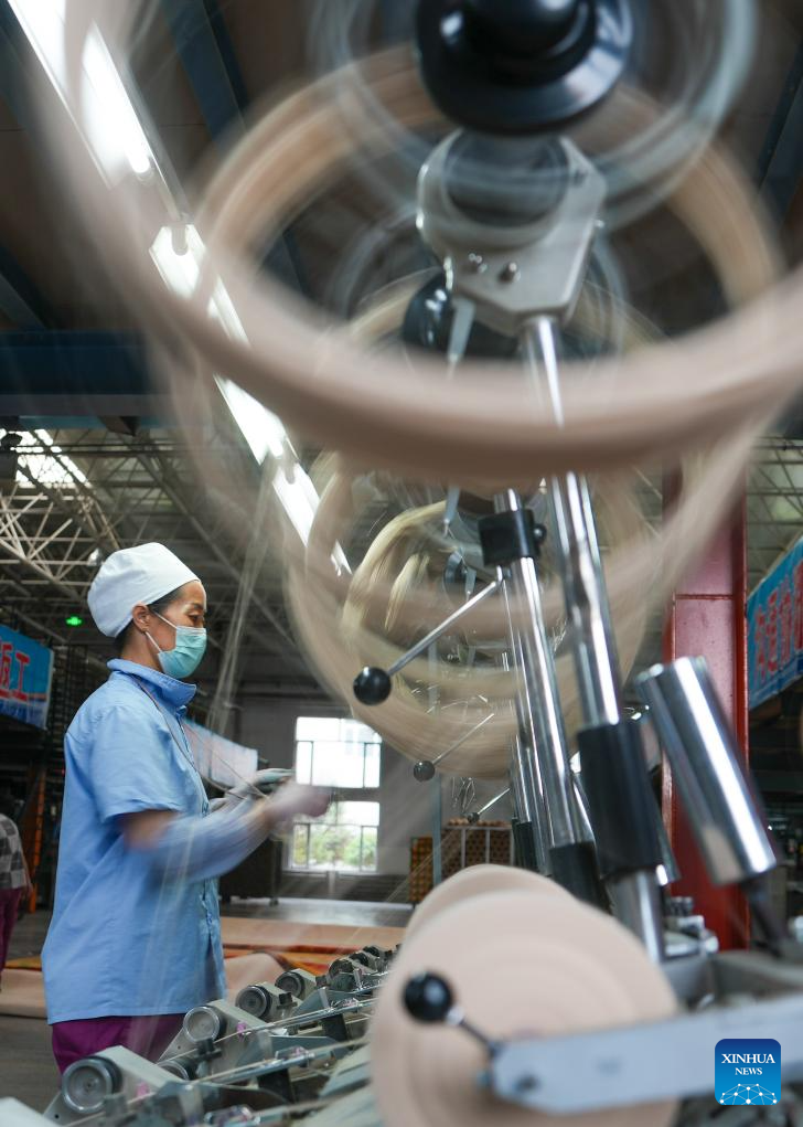 An employee works at a workshop making Tibetan carpets in Shengyuan carpet group in Xining, northwest China's Qinghai Province, Sept. 27, 2025. Tibetan carpet is a traditional handicraft on the Qinghai-Tibetan Plateau with a history of more than 1,000 years. The carpets are essential items for the nomadic people on the plateau to withstand the cold. The fine yak and sheep wool and the delicate weaving skills and patterns made the handmade products popular among overseas and domestic customers.