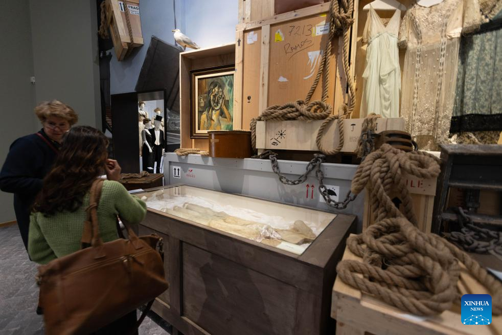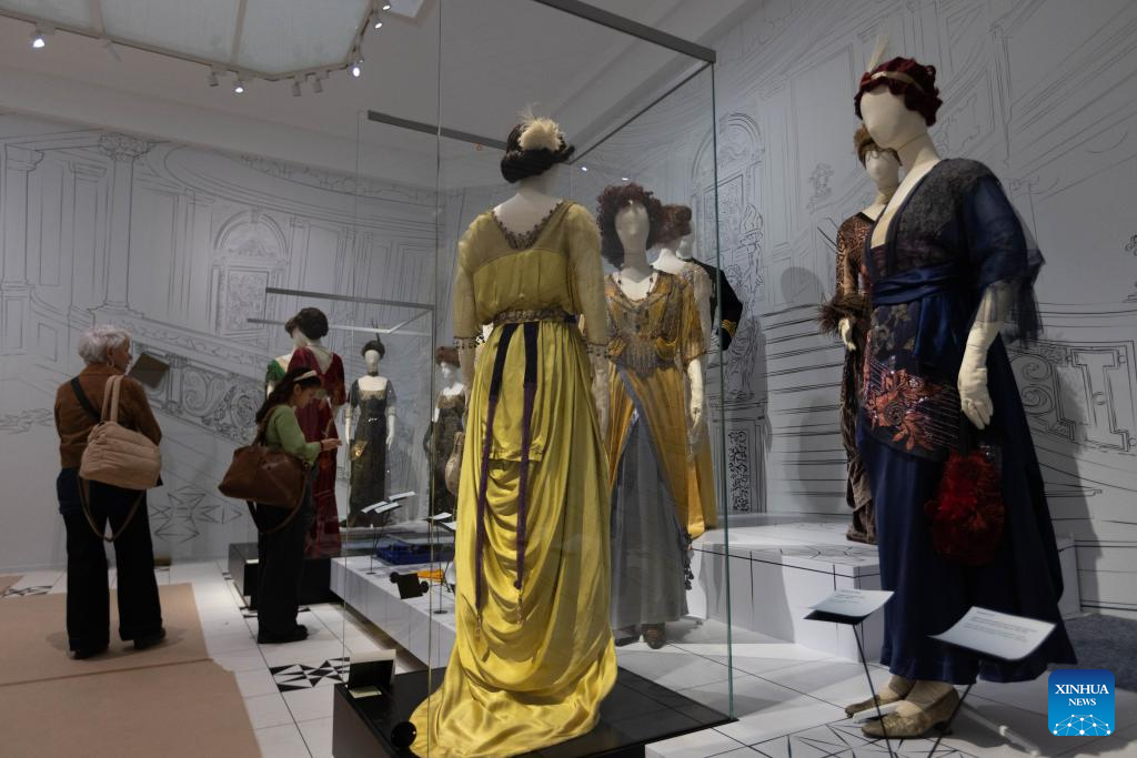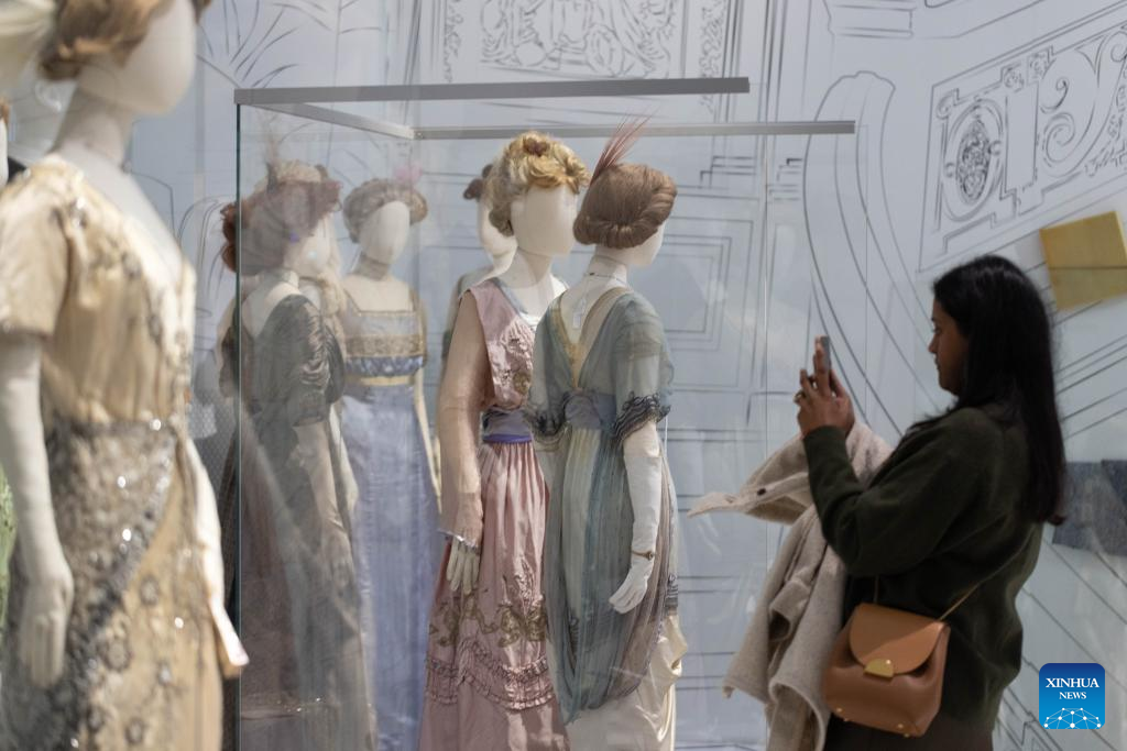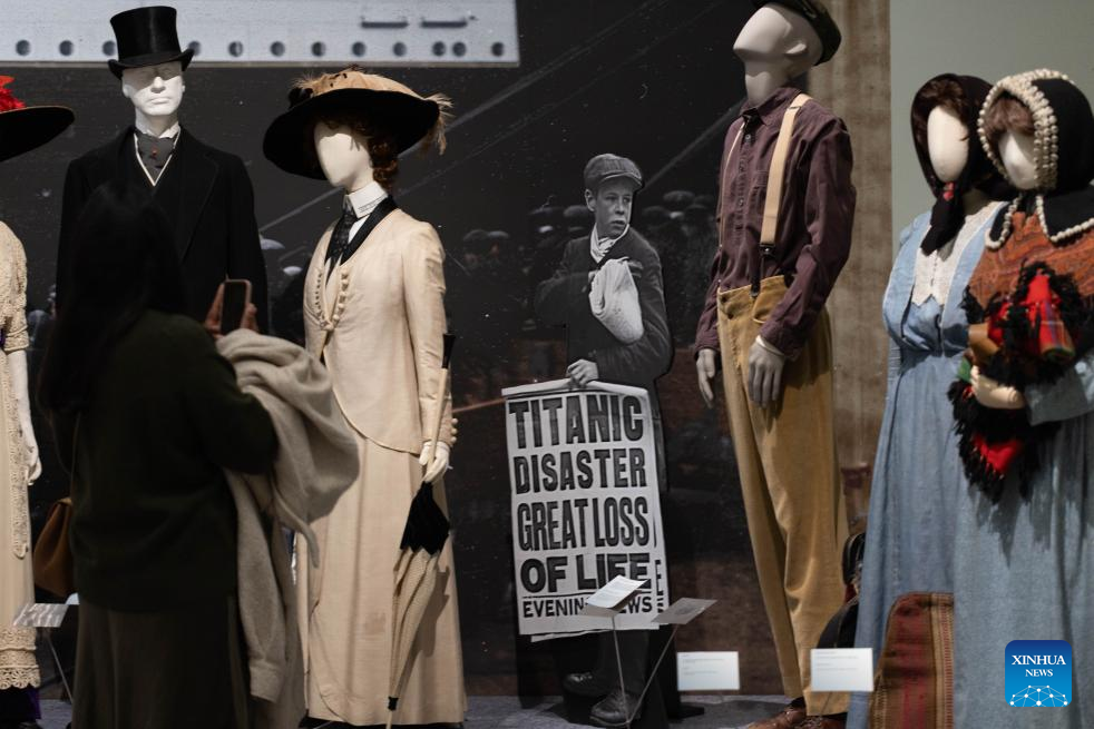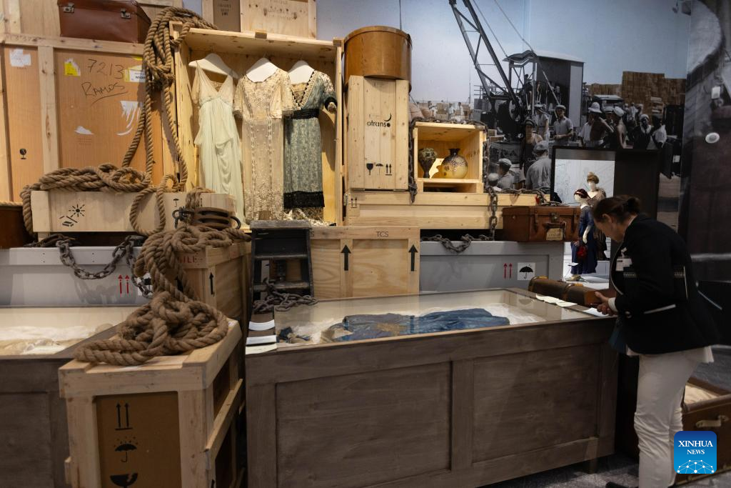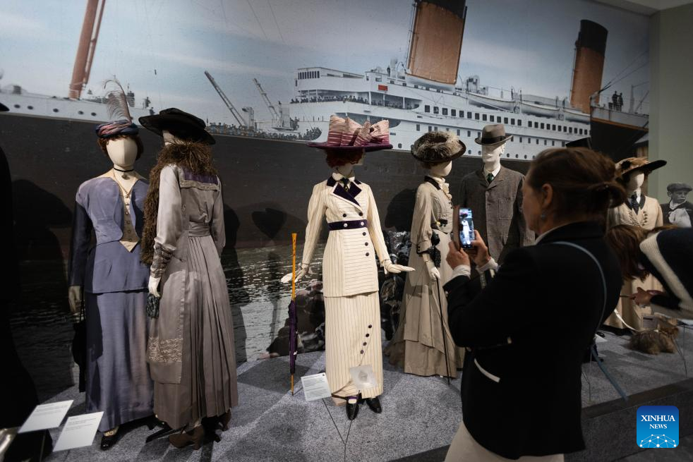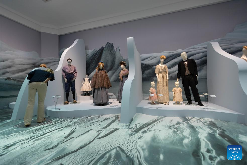 Exhibits are pictured during a media preview of the exhibition "Titanic & Fashion: The Last Dance" in The Hague, the Netherlands, Sept. 25, 2025. The exhibition, which will be open to the public on Saturday and run through to Jan. 25, 2026, gathers around 15 original costumes from the 1997 Oscar-winning film "Titanic," rare historical clothing in the 1910s from the museum's collection, and modern works by about 25 contemporary designers. (Photo by Sylvia Lederer/Xinhua)