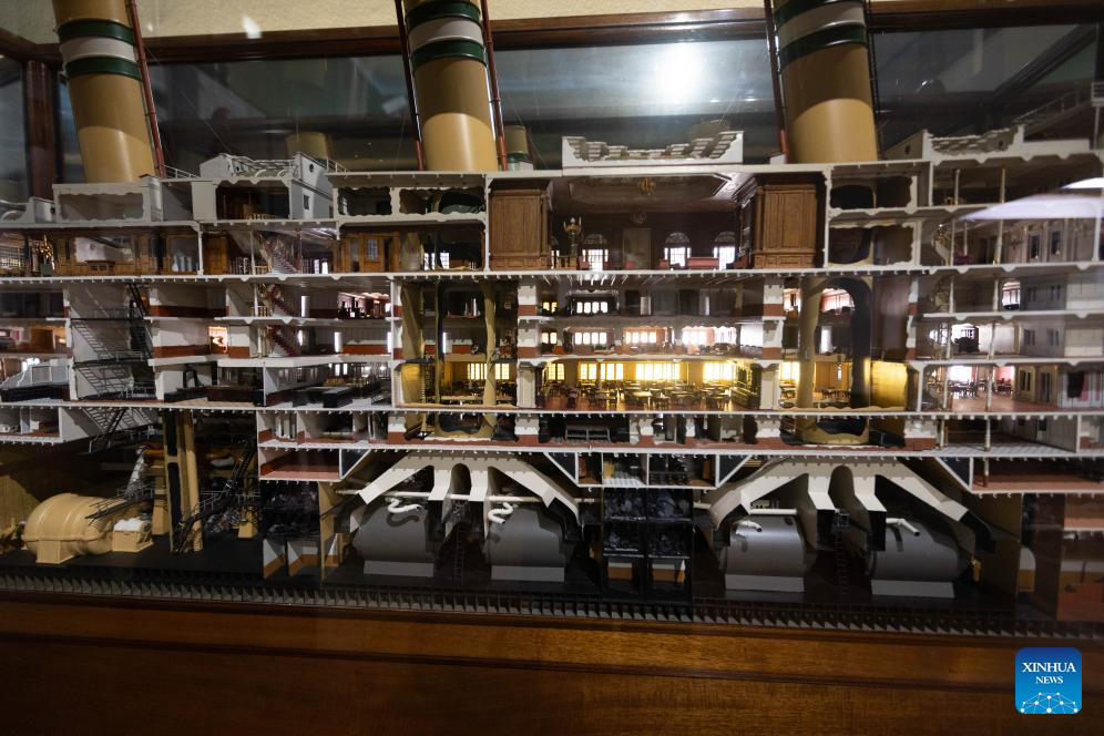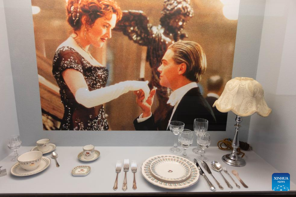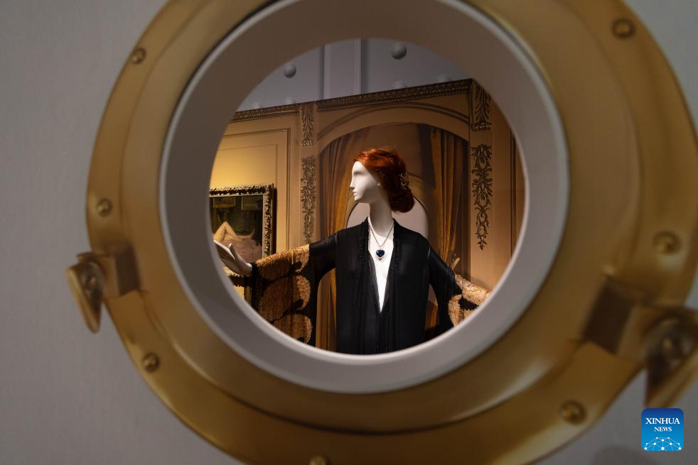 An exhibit is pictured during a media preview of the exhibition "Titanic & Fashion: The Last Dance" in The Hague, the Netherlands, Sept. 25, 2025. The exhibition, which will be open to the public on Saturday and run through to Jan. 25, 2026, gathers around 15 original costumes from the 1997 Oscar-winning film "Titanic," rare historical clothing in the 1910s from the museum's collection, and modern works by about 25 contemporary designers. (Photo by Sylvia Lederer/Xinhua)