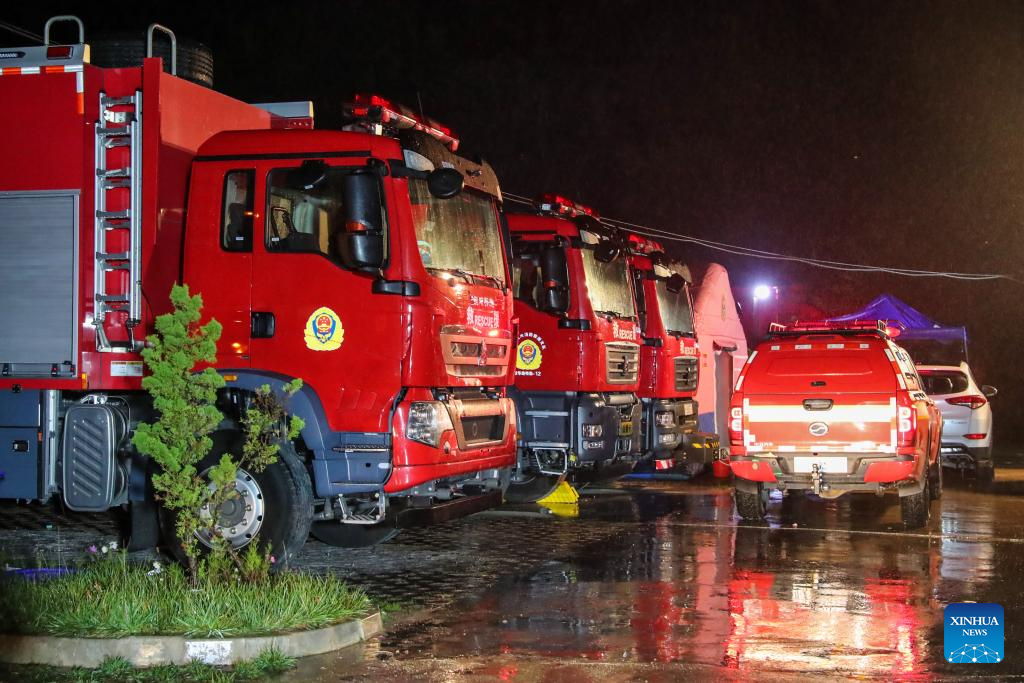 Rescuers from China's national comprehensive fire and rescue teams have arrived at the epicenter, according to the emergency management ministry. Meanwhile, rescuers and vehicles from the local fire and rescue forces, and personnel of specialized rescue teams have also joined the efforts. ■