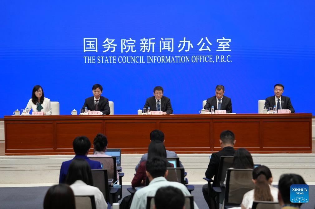 The State Council Information Office holds a briefing on transportation services during the Mid-Autumn Festival and National Day holiday in Beijing, capital of China, Sept. 28, 2025. (Xinhua/Cai Yang)