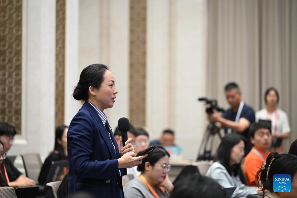 A journalist asks questions at a press conference held by the State Council Information Office (SCIO) on achievements in high-quality development of culture and tourism during the 14th Five-Year Plan period (2021-2025) in Beijing, capital of China, Sept. 29, 2025. Sun Yeli, deputy head of the Publicity Department of the Communist Party of China Central Committee and minister of culture and tourism, and Lu Yingchuan and Wang Jianhua, both vice ministers of culture and tourism, attended the press conference here on Monday. (Xinhua/Chen Yehua)