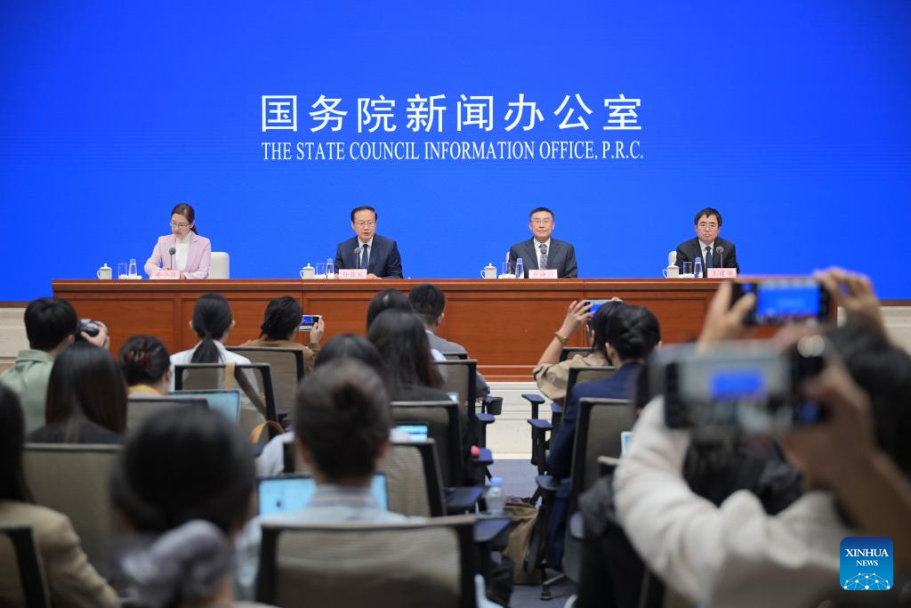 Sun Yeli, deputy head of the Publicity Department of the Communist Party of China Central Committee and minister of culture and tourism, and Lu Yingchuan and Wang Jianhua, both vice ministers of culture and tourism, attend a press conference held by the State Council Information Office (SCIO) on achievements in high-quality development of culture and tourism during the 14th Five-Year Plan period (2021-2025) in Beijing, capital of China, Sept. 29, 2025. (Xinhua/Chen Yehua)