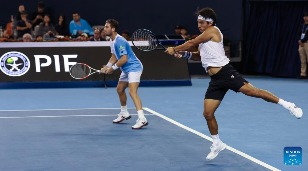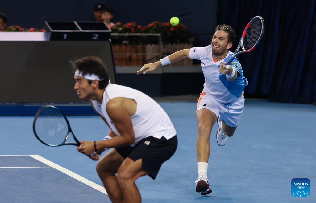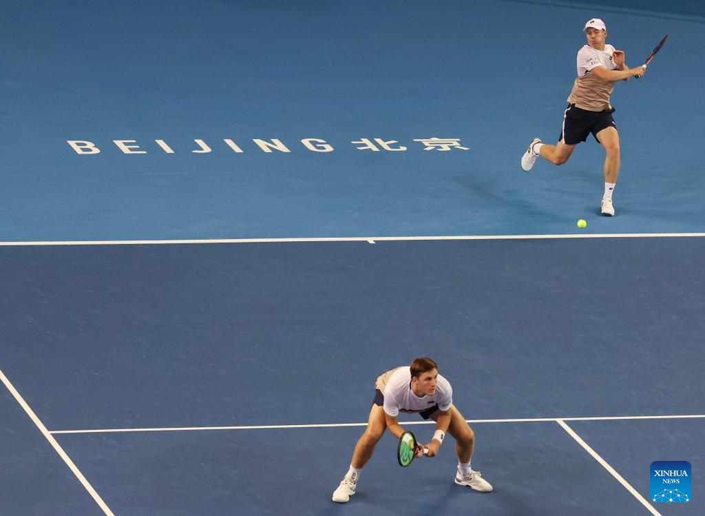 Bu Yunchaokete/Cameron Norrie (R) compete during the men's doubles quarterfinal match between Bu Yunchaokete (China)/Cameron Norrie (Britain) and Harri Heliovaara (Finland)/Henry Patten (Britain) at 2025 China Open tennis tournament in Beijing, China, Sept. 28, 2025. (Photo by Ma Zihan/Xinhua)
