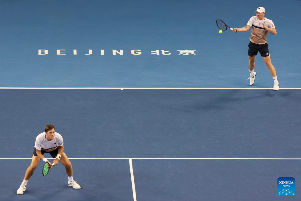 Harri Heliovaara (R)/Henry Patten compete during the men's doubles quarterfinal match between Bu Yunchaokete (China)/Cameron Norrie (Britain) and Harri Heliovaara (Finland)/Henry Patten (Britain) at 2025 China Open tennis tournament in Beijing, China, Sept. 28, 2025. (Photo by Ma Zihan/Xinhua)