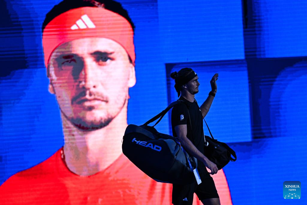 Alexander Zverev enters the court before the men's singles second round match between Corentin Moutet of France and Alexander Zverev of Germany at 2025 China Open tennis tournament in Beijing, China, Sept. 28, 2025. (Xinhua/Xin Mengchen)