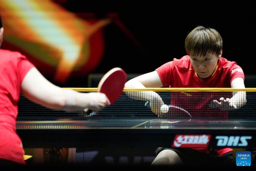 BEIJING, Sept. 29 (Xinhua) -- Women's singles second seed Wang Manyu advanced to the last 32 at the World Table Tennis (WTT) China Smash on Monday after defeating compatriot He Zhuojia in straight games.