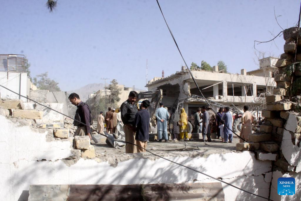 ISLAMABAD, Sept. 30 (Xinhua) -- Ten people were killed and 30 others injured in a suicide attack targeting the headquarters of paramilitary forces in Pakistan's southwest Balochistan province on Tuesday, the provincial Health Minister Bakht Muhammad Kakar told media.