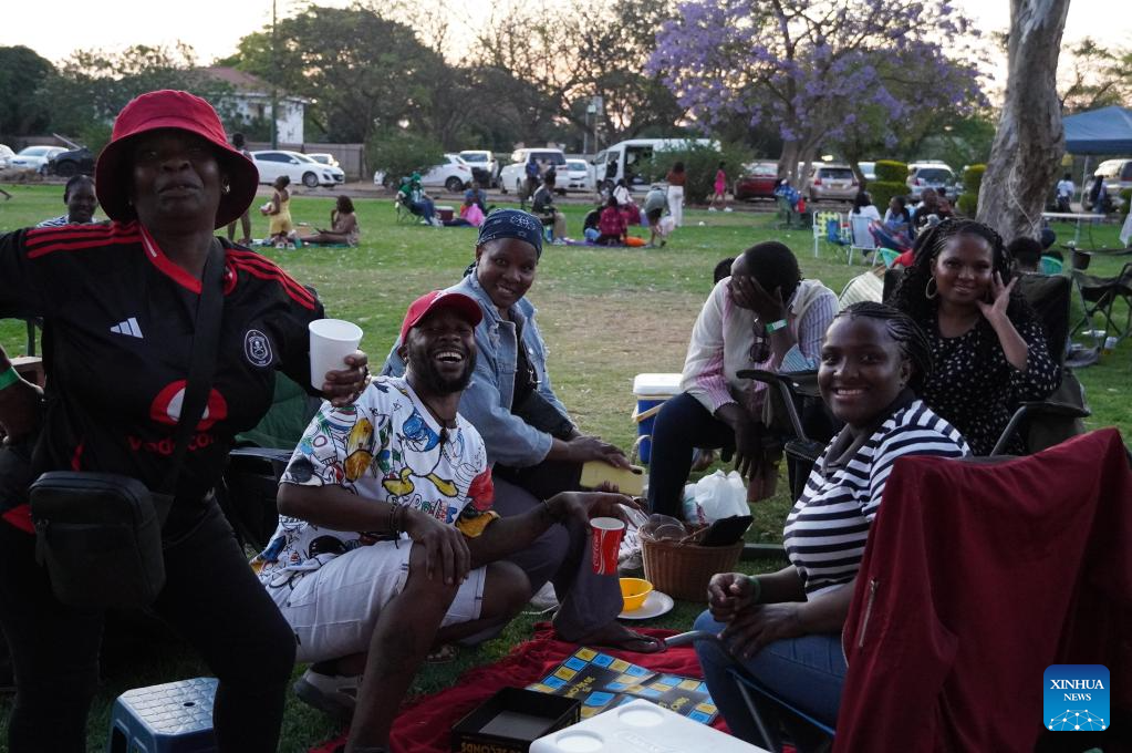 People gather together at a park in Gaborone, Botswana, Sept. 30, 2025. Duma Boko, president of Botswana, on Tuesday encouraged people to embrace unity and cooperation to safeguard and foster peace and harmony in the world. Boko made the remarks in a national address, broadcast live on Botswana Television to mark the 59th anniversary of Independence Day, calling on citizens of the southern African country to be patriotic, reflective, and forward-looking.(Xinhua/Guo Chunju)