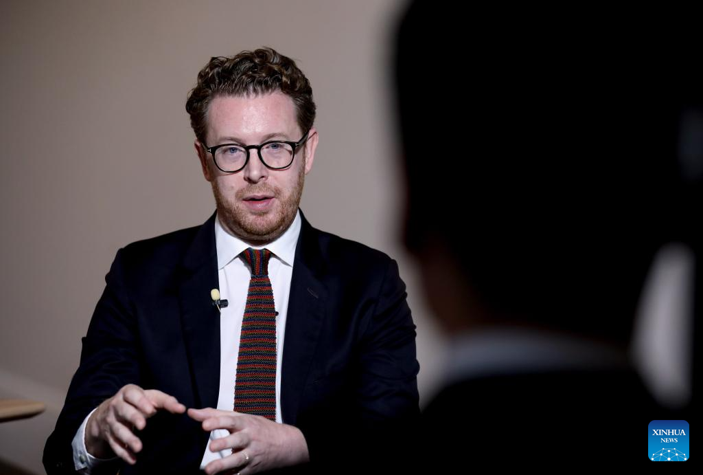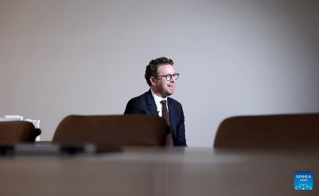 Nicholas Cullinan, director of the British Museum, speaks during an interview with Xinhua in London, Britain, Sept. 29, 2025. (Xinhua/Li Ying)
