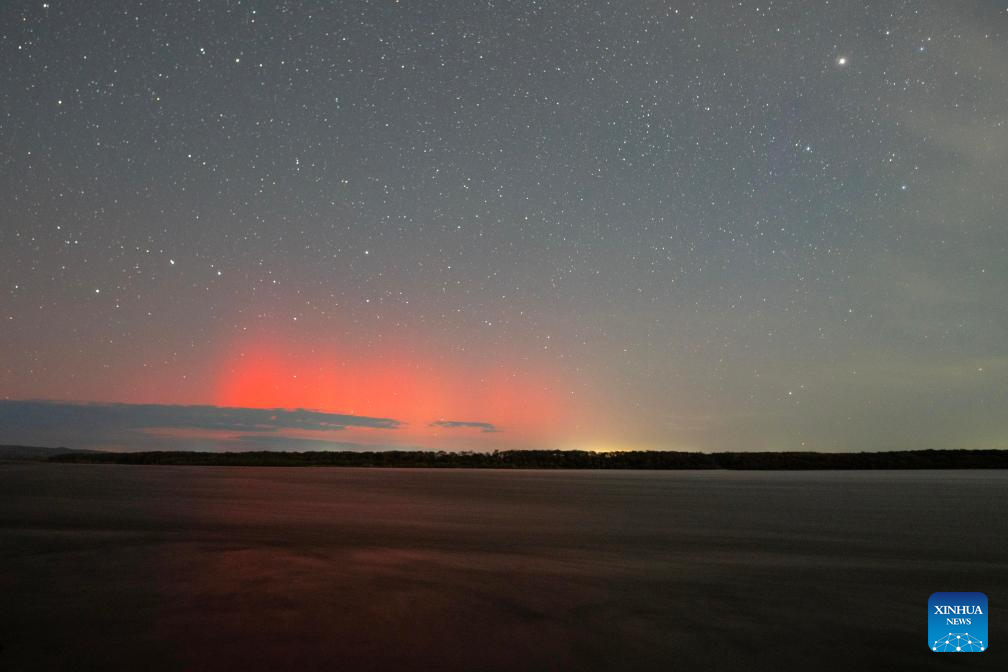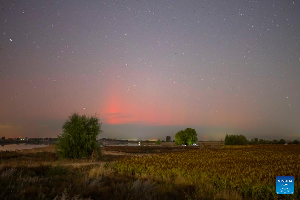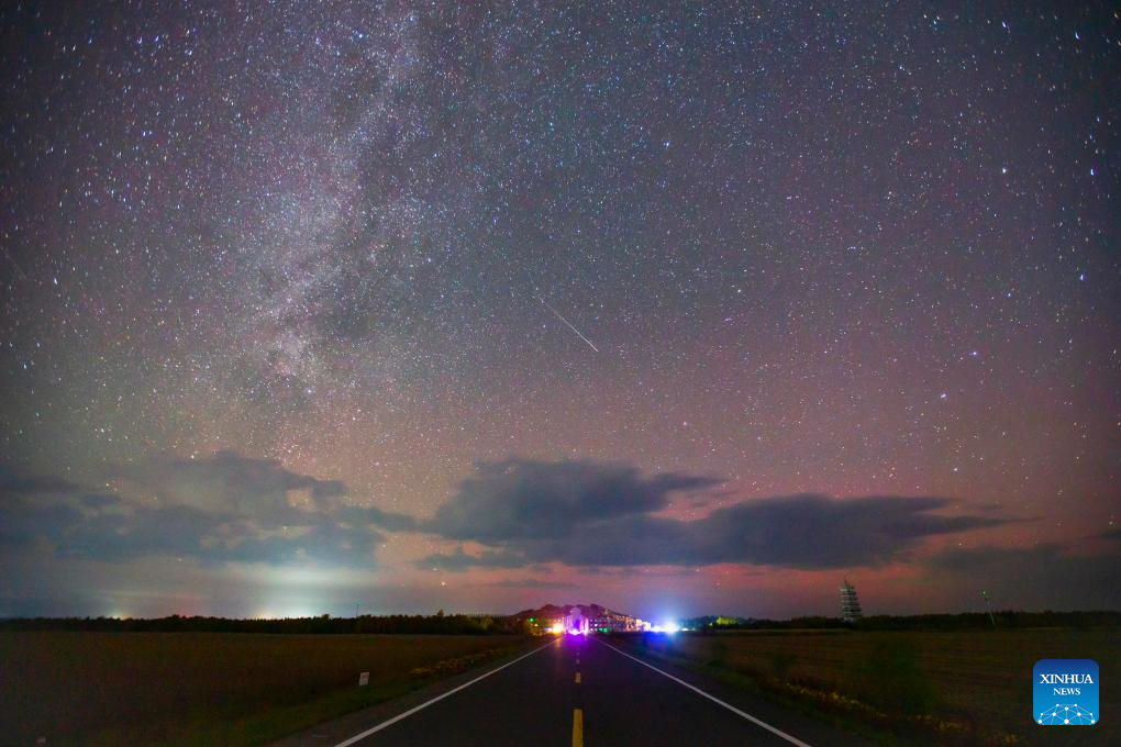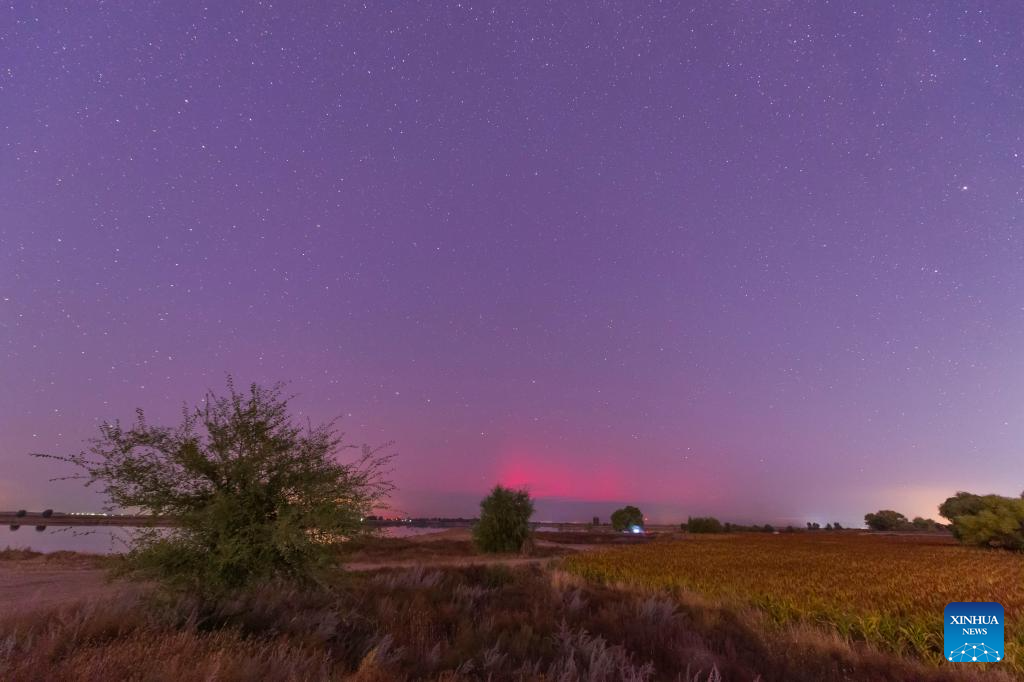 This photo taken on Oct. 1, 2025 shows the aurora seen in Qiqihar City, northeast China's Heilongjiang Province. (Photo by Wang Yonggang/Xinhua)