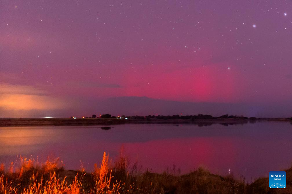 This photo taken on Sept. 30, 2025 shows the aurora seen in Qiqihar City, northeast China's Heilongjiang Province. (Photo by Wang Yonggang/Xinhua)
