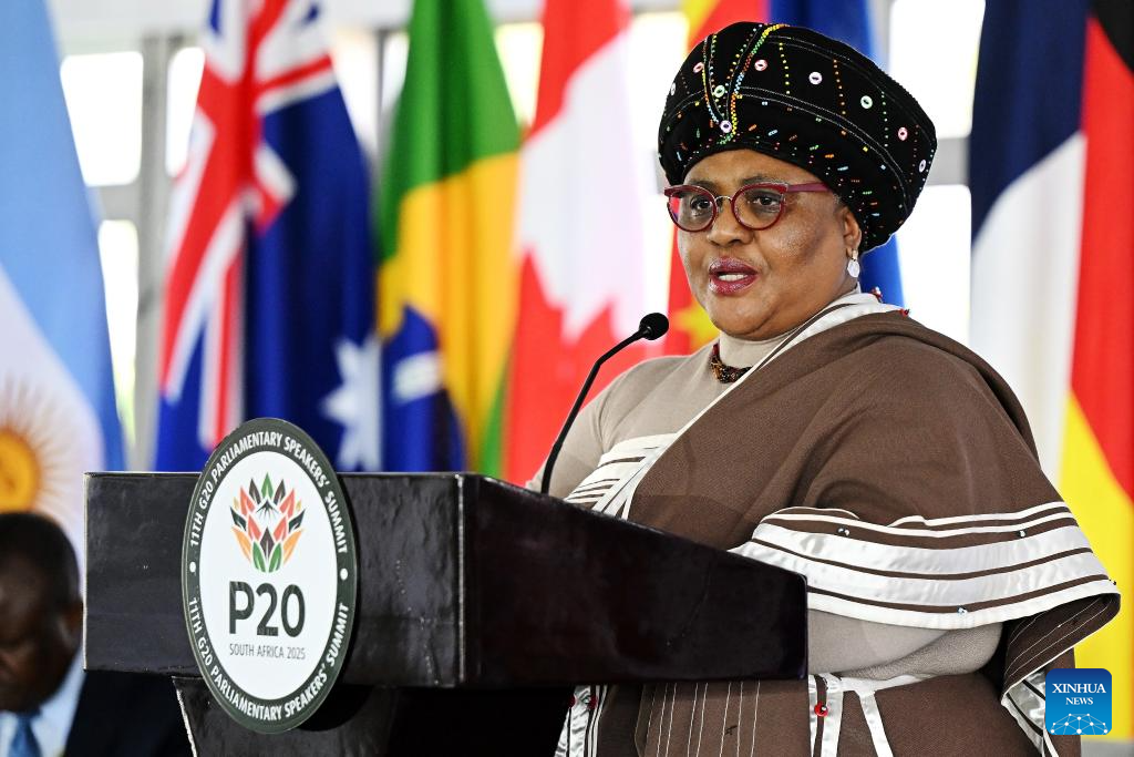 South Africa's National Assembly Speaker Thoko Didiza speaks at the opening ceremony of the 11th G20 Parliamentary Speakers' Summit in Kleinmond, Western Cape Province, South Africa, Oct. 1, 2025. The 11th Group of 20 (G20) Parliamentary Speakers' Summit opened on Wednesday in South Africa's Western Cape Province, placing parliamentary diplomacy at the center of discussions. (Photo by Xabiso Mkhabela/Xinhua)