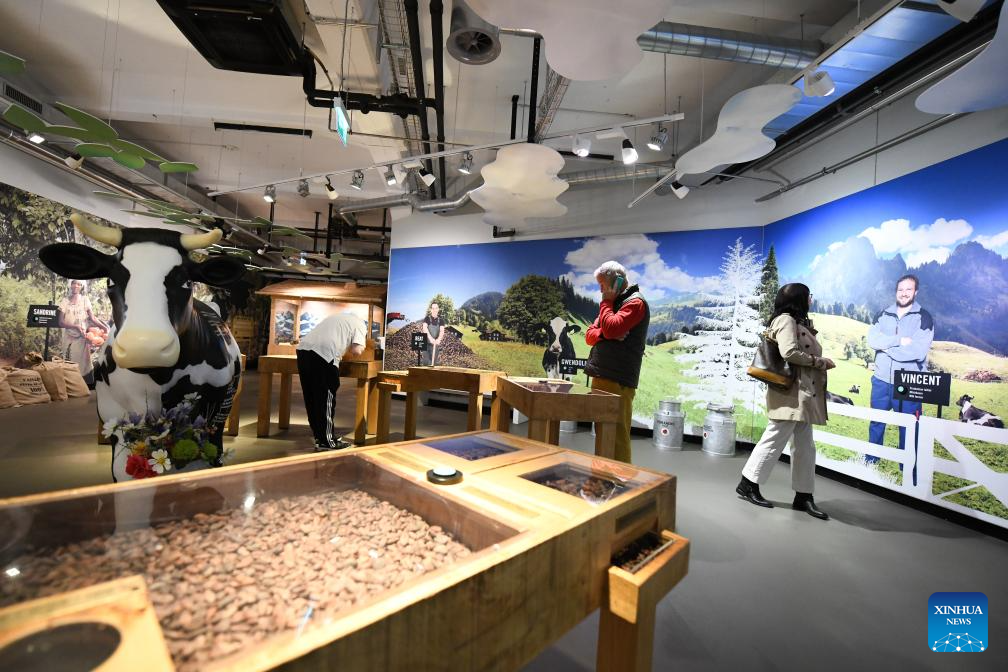 People visit the Maison Cailler Museum in Broc, Gruyere, Switzerland, Oct. 1, 2025. The Maison Cailler Museum is one of Switzerland's most popular tourist attractions. It offers an immersive multi-sensory journey into the history and production of Cailler chocolate, showcasing the origins of cocoa, Swiss chocolate-making craftsmanship, Gruyere milk and local traditions. The museum has welcomed more than 5.5 million visitors since its opening in 2010.