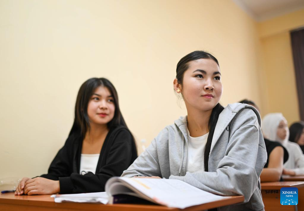 Students attend a Chinese language class at the Osh State University's Confucius Institute in Osh, Kyrgyzstan, Sept. 18, 2025. (Xinhua/Li Renzi)