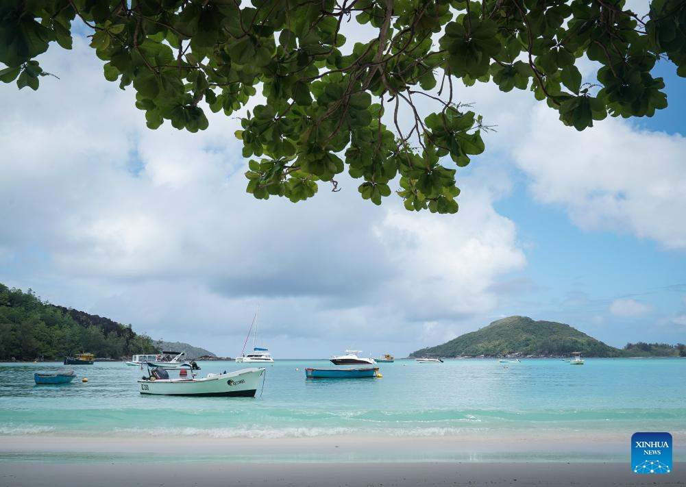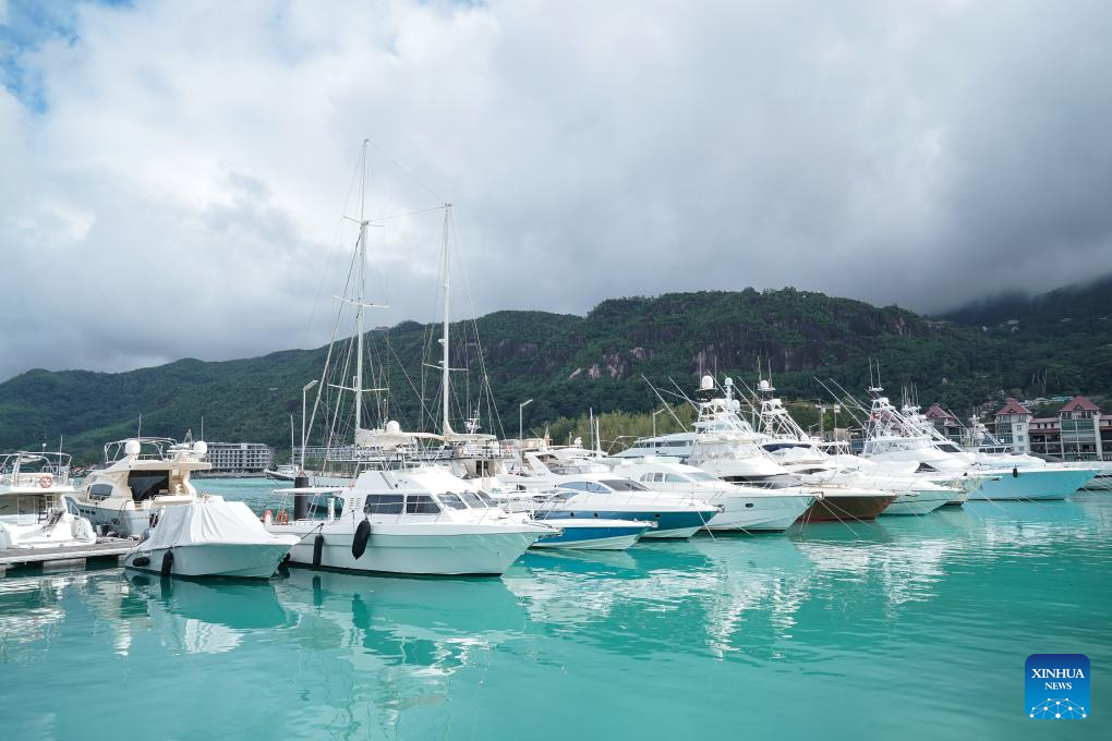 Boats are moored at a pier on Mahe Island, Seychelles, on Sept. 26, 2025. Seychelles is an Indian Ocean archipelago comprising 115 islands. Mahe Island, the largest among all islands of the nation, is home to the capital city Victoria and a renowned tourist destination. (Xinhua/Han Xu)
